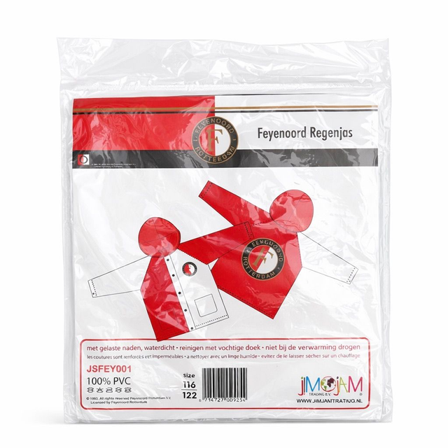 Dankzij het lichte materiaal is de jas comfortabel om te dragen en eenvoudig aan en uit te trekken. De rood-witte clubkleuren zorgen voor een herkenbare en sportieve uitstraling die perfect past bij Feyenoord. De regenjas is praktisch, duurzaam en speciaal ontworpen voor kinderen, zodat zij droog én in stijl op pad gaan. Ook zeer geschikt als cadeau voor jonge Feyenoord-supporters die graag buiten zijn, ongeacht het weer.